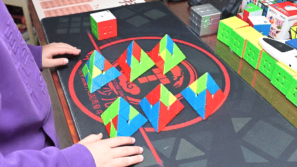 每天放学,当巷子里的奔跑声、欢笑声此起彼伏,他却更愿意静坐在桌前,与魔方“交手”。“我最喜欢金字塔魔方,它像座小山,我想用最快速度翻过去。”在他手中,魔方有时是挑战,有时又是“玩具”,疲惫时拼成一座小房子、一辆小火车,陪他在想象里穿行。